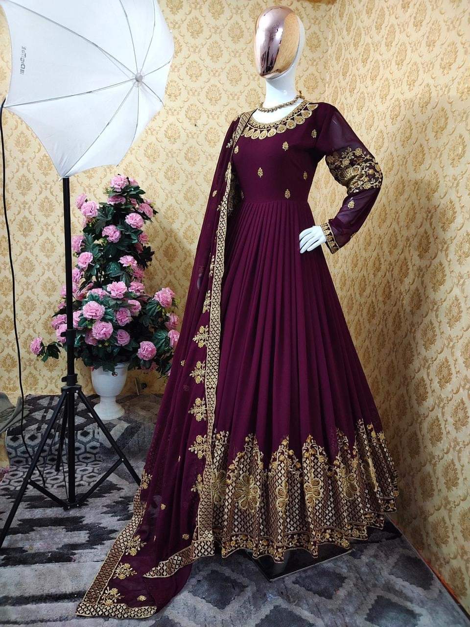 - ওড়না - জর্জেট এমব্রয়ডারি কাজ করা