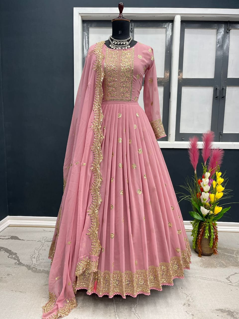 - ওড়না - জর্জেট এমব্রয়ডারি কাজ করা