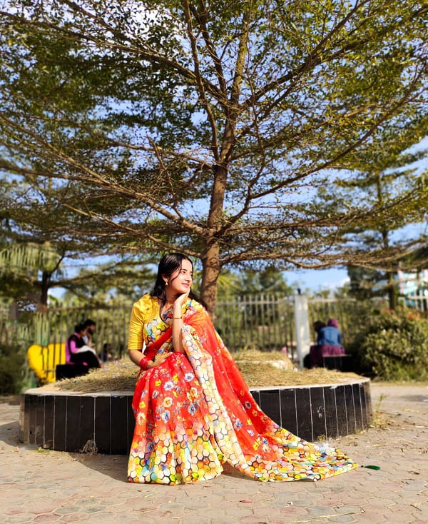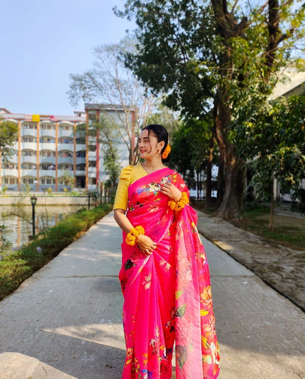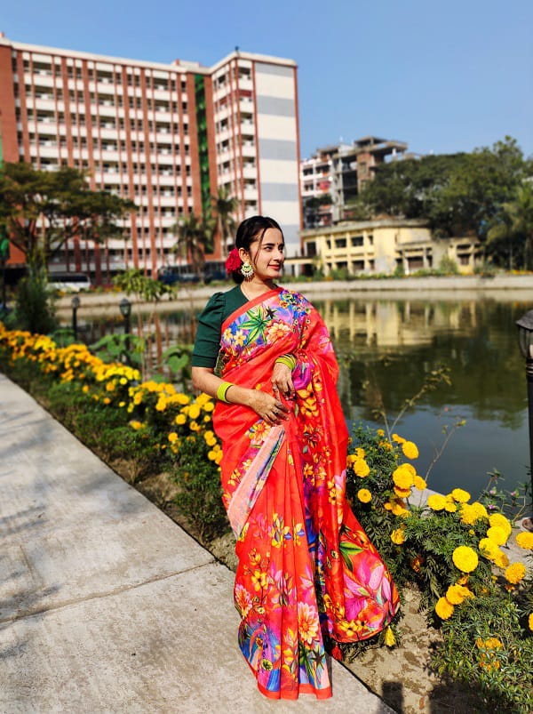 - -উজ্জ্বল রঙ ও নান্দনিক নকশার শাড়ি, যা প্রতিদিনের ব্যবহার